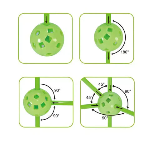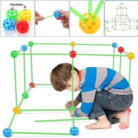 Os Tubos de peças permite às crianças construírem sozinhas usando varetas como vigas e bolinhas com conectores, e usando sua imaginação para criar tudo que quiser desde castelos, cavernas, barracas, foguetes, casas, iglus, túneis e muito mais.