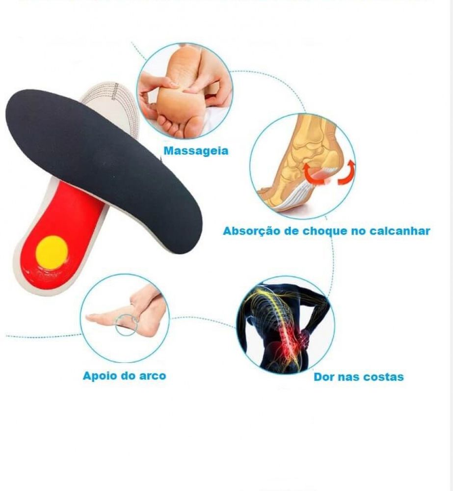 - Acaba com as dores causadas pelo esporão calcâneo devido ao seu sistema de amortecimento feito de EVA, material muito macio e confortável, absorvendo o impacto ao caminhar.
